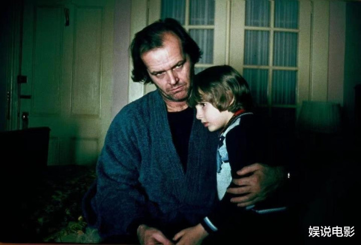 《闪灵》里更是鲜血淋漓,特朗斯提着斧头追逐自己妻儿的场景令人历历在目,其目眦尽裂的恶人之相充满恐怖的气氛。恶的行为体现在暴力活动上,特朗斯这个父亲形象,阴郁、暴力、变态,让人不寒而栗,难以接近。精神疾病困扰着这个作家,这虽然不是蓄意一场家庭暴力的演绎,但它同样彰显出暴力是促成惊悚恐怖影像的关键。