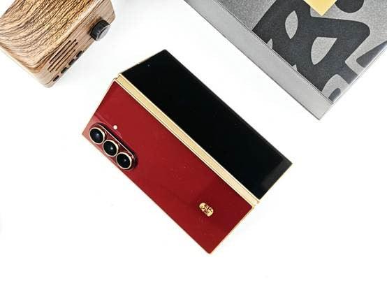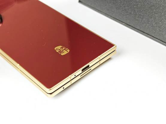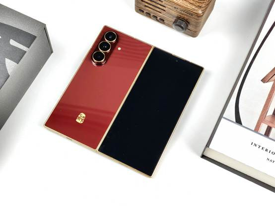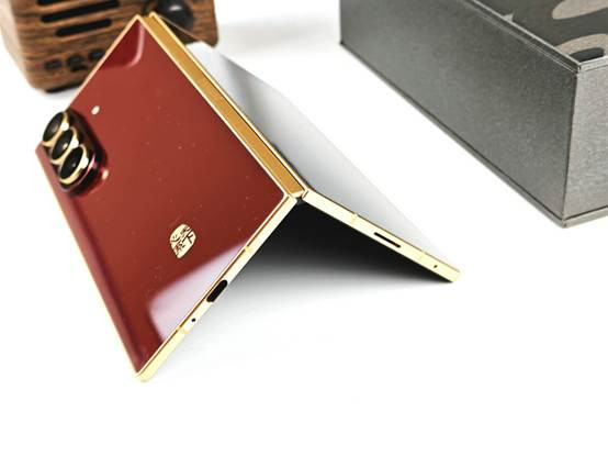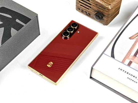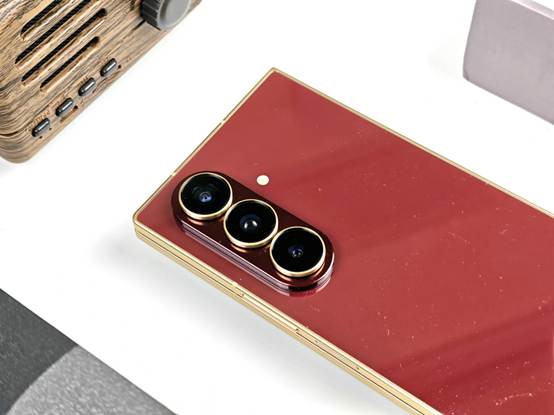 机身背部,三星W26的背部设计同样令人瞩目。其提供了“丹曦红”与“玄曜黑”两种配色方案,笔者此次拿到的是其中的“丹曦红”配色版本,在光线的映照下,可以展现出沉稳而大气的酒红色,极具辨识度和质感。